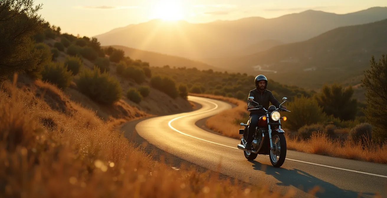 El zumbido monótono de la autopista adormece los sentidos. El paisaje, una mancha verde y marrón que pasa a 120 km/h, se vuelve irrelevante. El destino es lo único que importa. Todos conocemos esa sensación de viajar en moto como un mero trámite, un desplazamiento eficiente pero vacío. Buscamos en foros, compramos guías y usamos la opción «evitar autopistas» en el GPS, pensando que la clave para una buena ruta está en la planificación. ¿Y si el secreto no estuviera en la tecnología, sino en la filosofía con la que nos subimos a la moto?