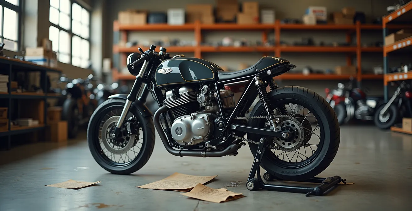 Este artículo adopta una perspectiva radicalmente diferente, la de un ingeniero de homologaciones. No vamos a hablar de estética, sino de estrategia. La clave del éxito no está en tu habilidad para soldar, sino en tu capacidad para anticipar las restricciones de la ITV antes incluso de comprar la moto base. Este es un enfoque de «ingeniería inversa de la ITV»: pensar como el inspector para tomar decisiones inteligentes desde el primer euro invertido.